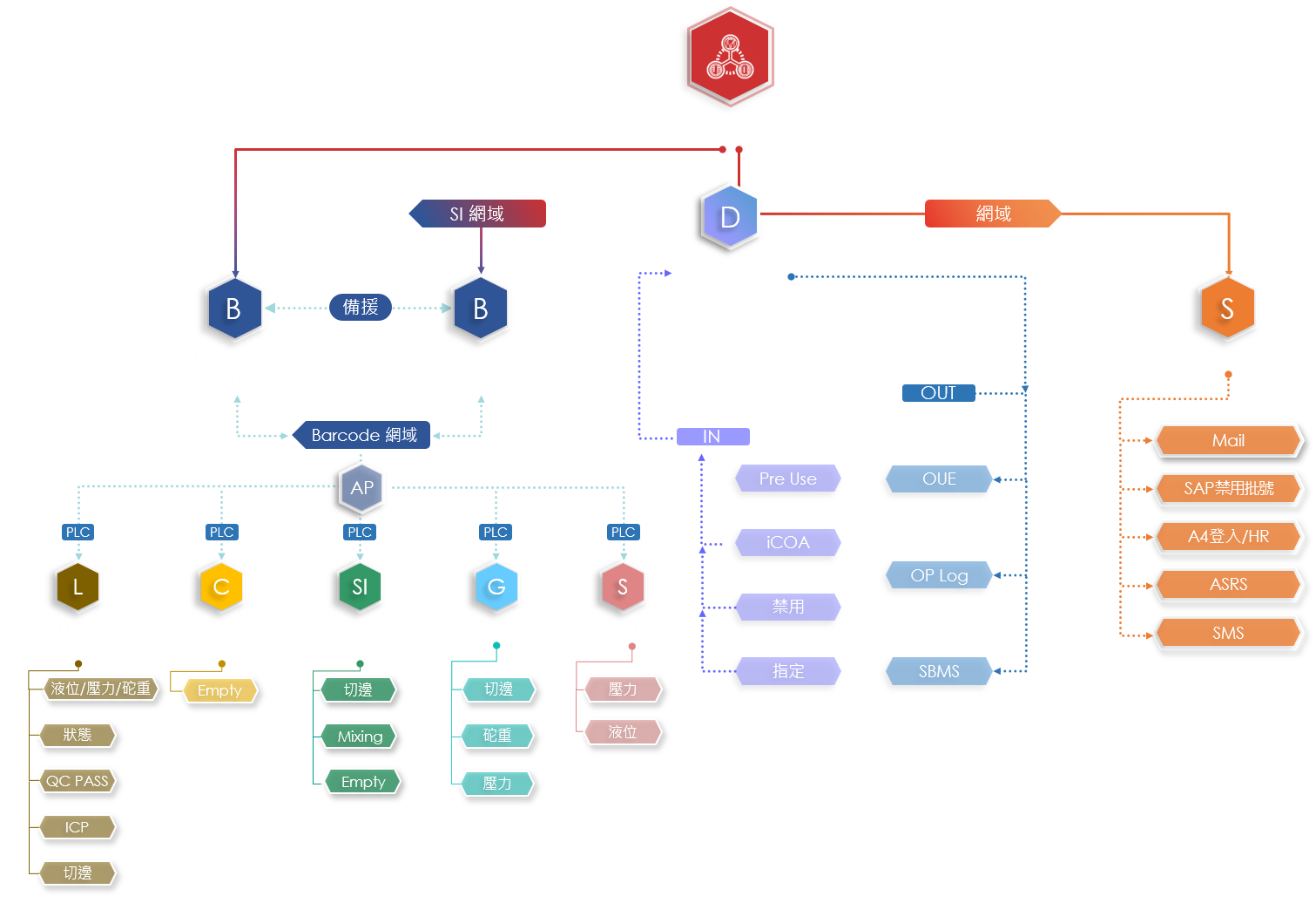 利用Barcode/RFID能将原料逐项单位命名,无论原料如何调度,只要使用随身PDA,操作不受地点限制,让原物料在厂区灵活流动使用,并且完整确切地掌控,使企业生产达成资讯通透、管理、控制、协同合作及决策相互支援等目标,为产品生产历程留下完整纪录,并可由系统进行不良率因素统计分析与公司ERP系统进行整合,进而提高产品稳定性与符合客户对生产过程管控的目的。